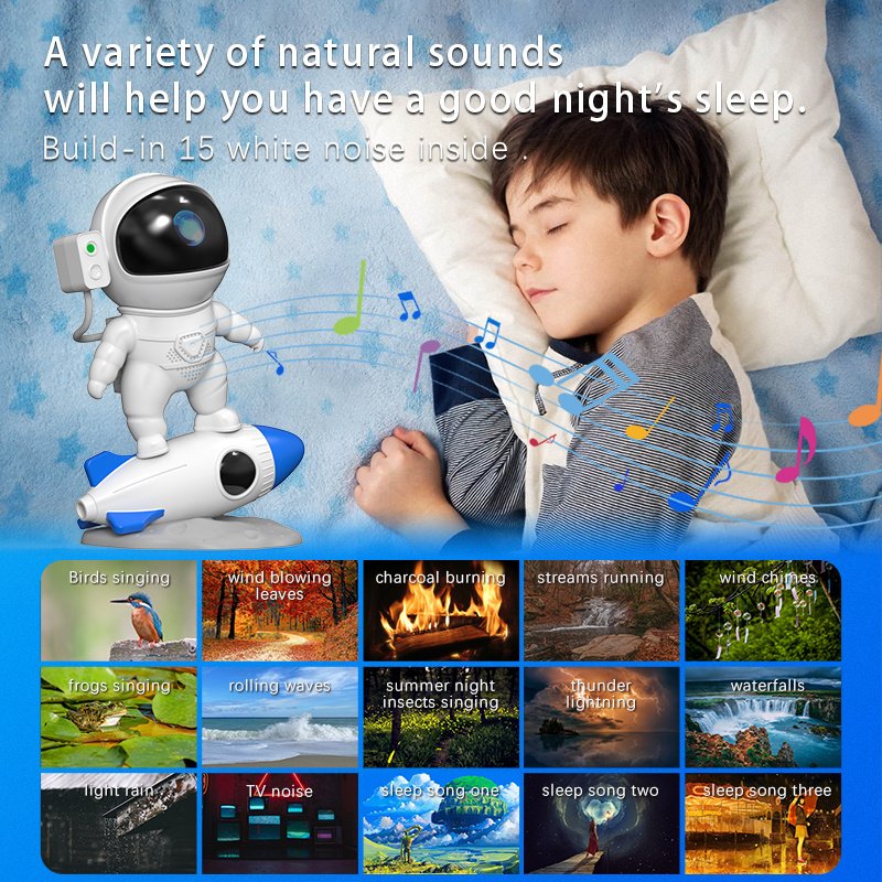 Rocket astronaut star projection lamp nebula, white noise speaker RGB atmosphere night light, bedroom night light to help sleep